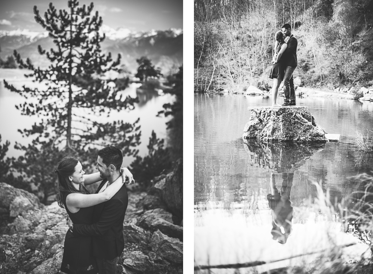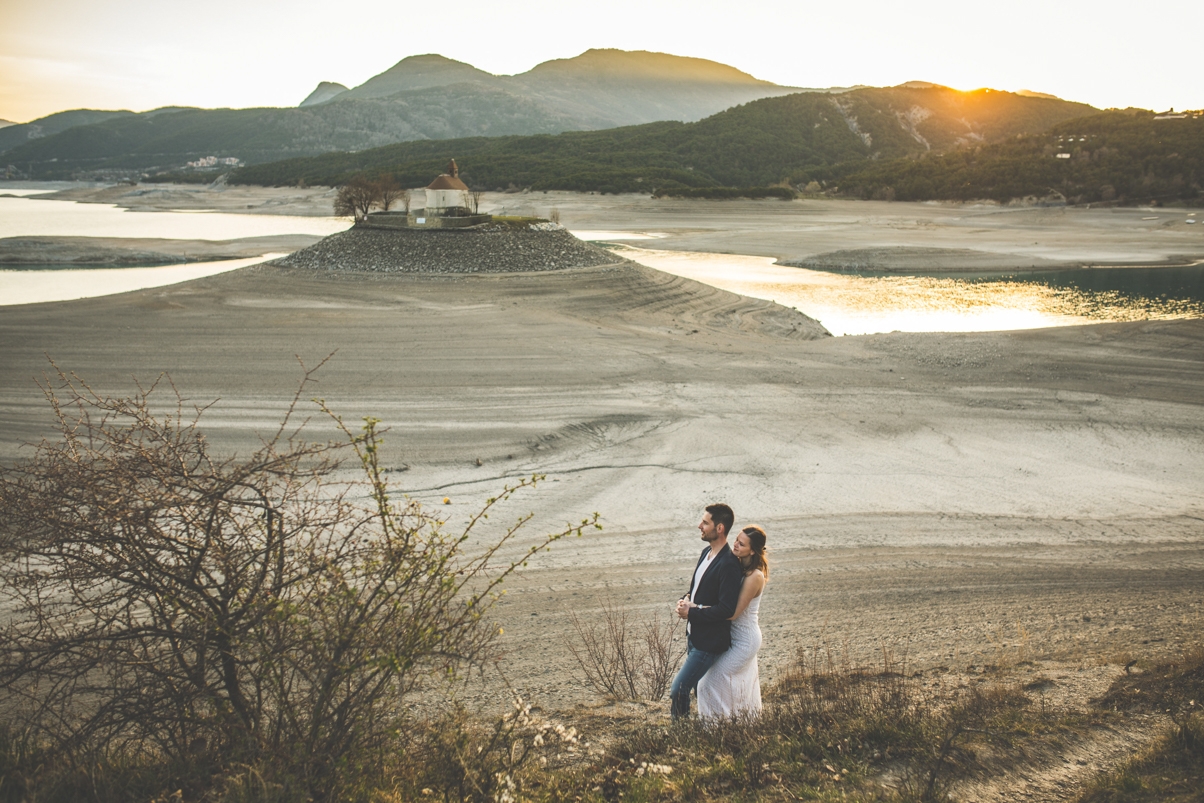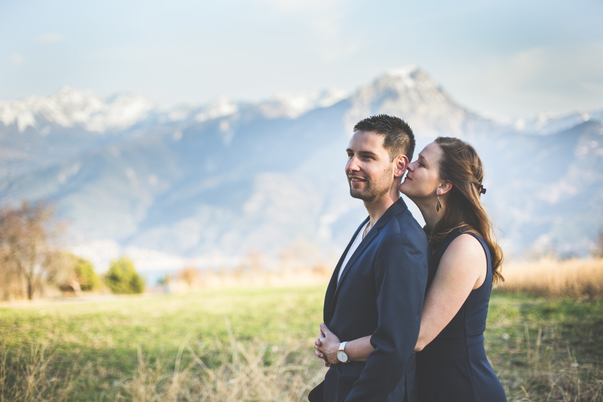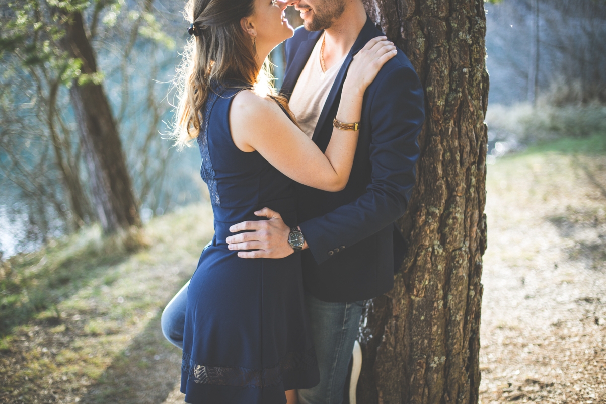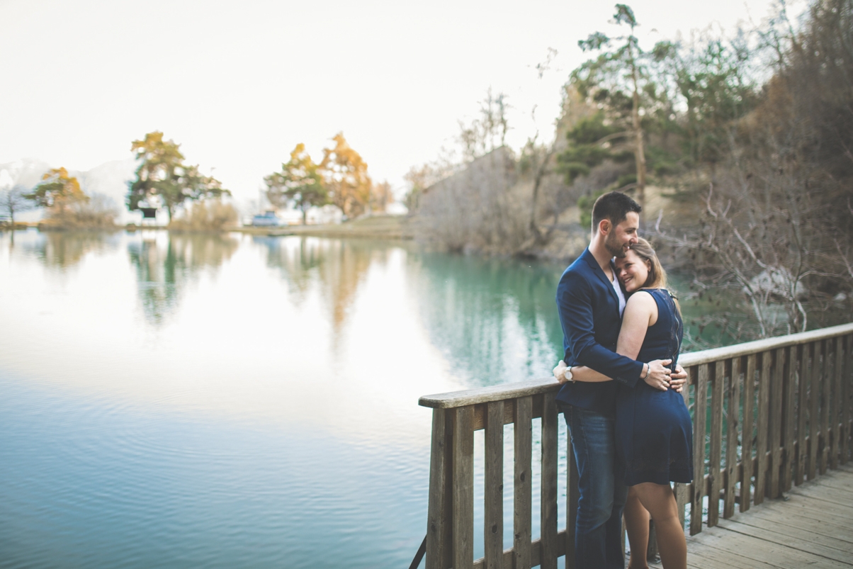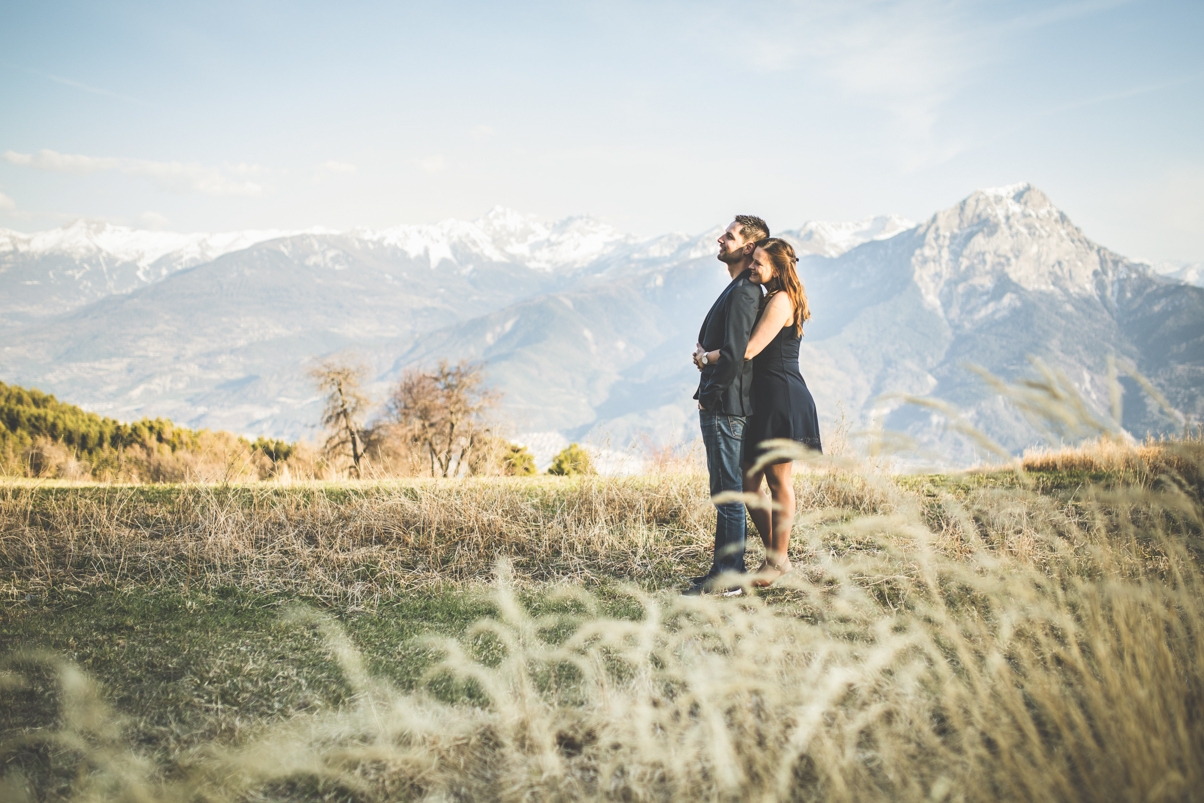 Ils vivent aujourd’hui à Gap, il m’est alors apparu comme une évidence de leur proposer de réaliser leur séance engagement dans ce studio un peu différent ! Nous avons choisi de prendre un peu de hauteur au lac de Saint-Apollinaire. A environ de 1350 mètres d’altitude. Nous avons terminé la séance autour du lac de Serre-ponçons. Malgré le fait qu’il soit très bas en cette saison le décor demeure charmant. En fin de journée, la lumière se fait plus douce encore, un bonheur pour les photographes. L’îlot Saint-Michel (ça ne s’invente pas !) et sa chapelle se détachent du fond du lac. Nous sommes un peu hors du temps autour ce ces symboles des Hautes-Alpes.