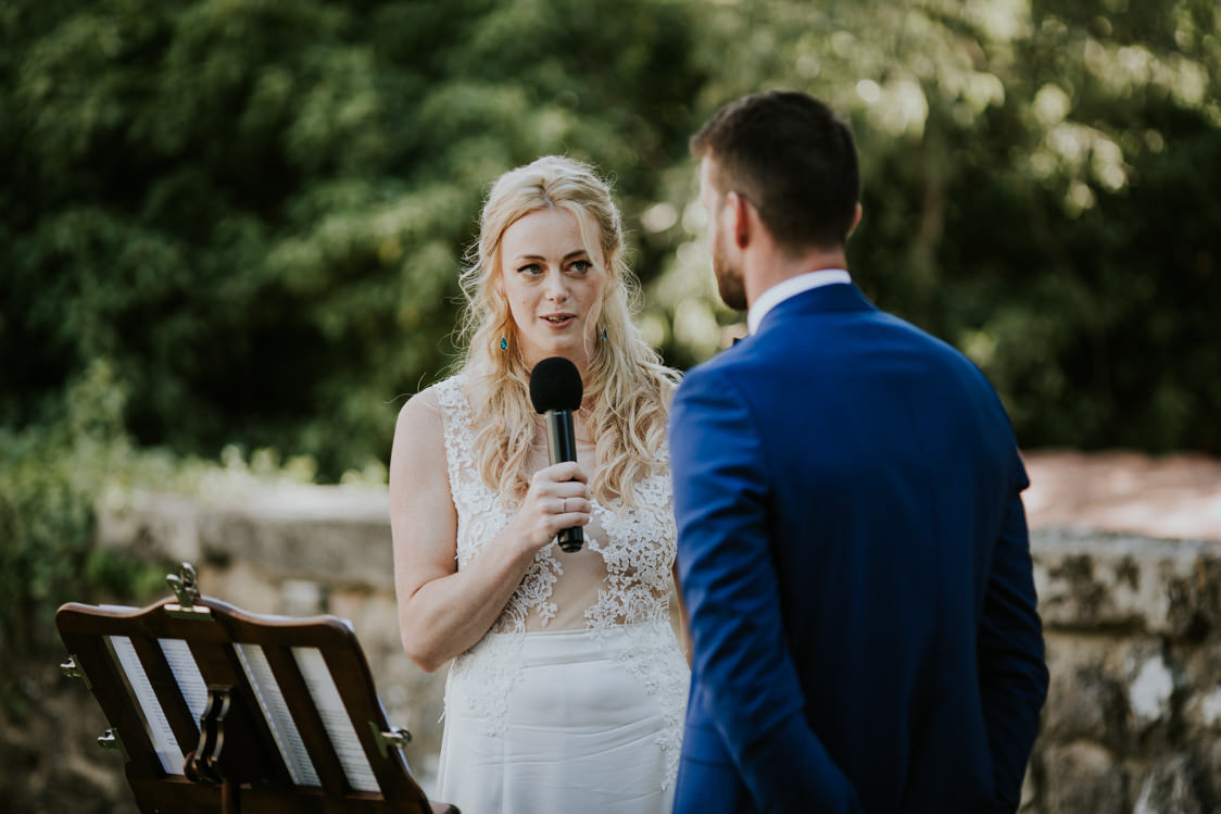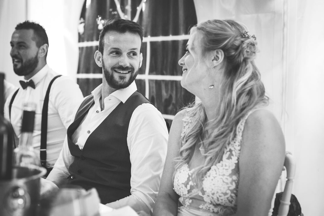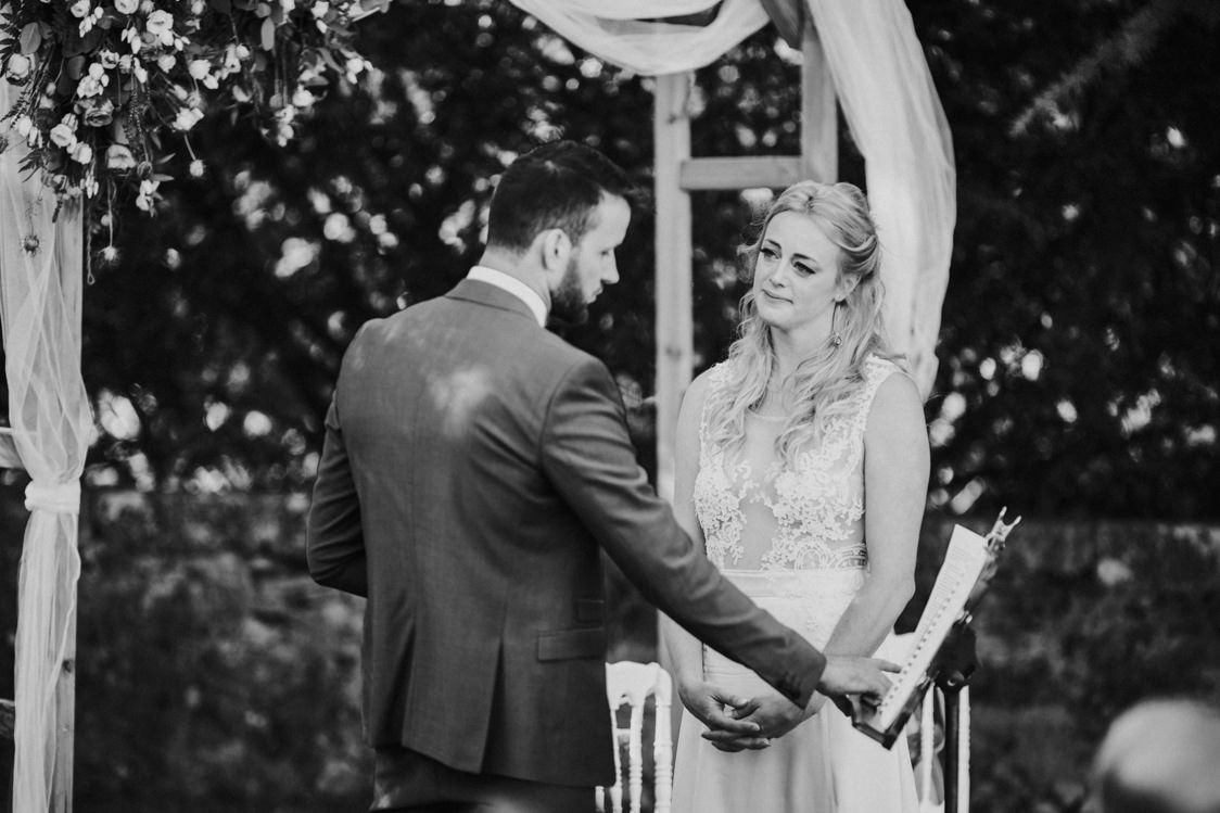 Il est assez rare que je me laisse laisser gagner par l’émotion lors d’une cérémonie. C’est à dire que le fait d’être en recherche permanente d’angles, de détails, de regards ne me laisse pas toujours la place à l’écoute. Mais leurs mots et leurs regards durant leur échange de vœux m’ont beaucoup touché et je n’ai pas pu rester insensible à cette vague d’amour.