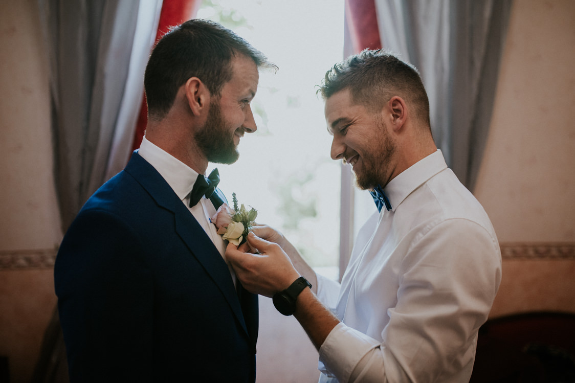 Tandis que les préparatifs battent leur plein, l’ambiance est détendue, le lieu est magnifique, les mariés tout autant. En résumé, tout est donc en place pour que cette journée de mariage soit parfaite.