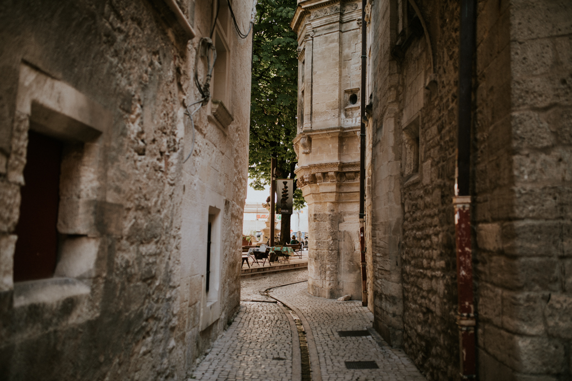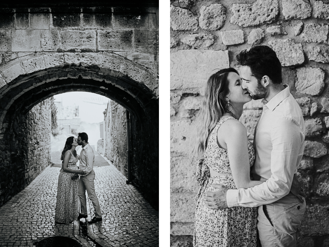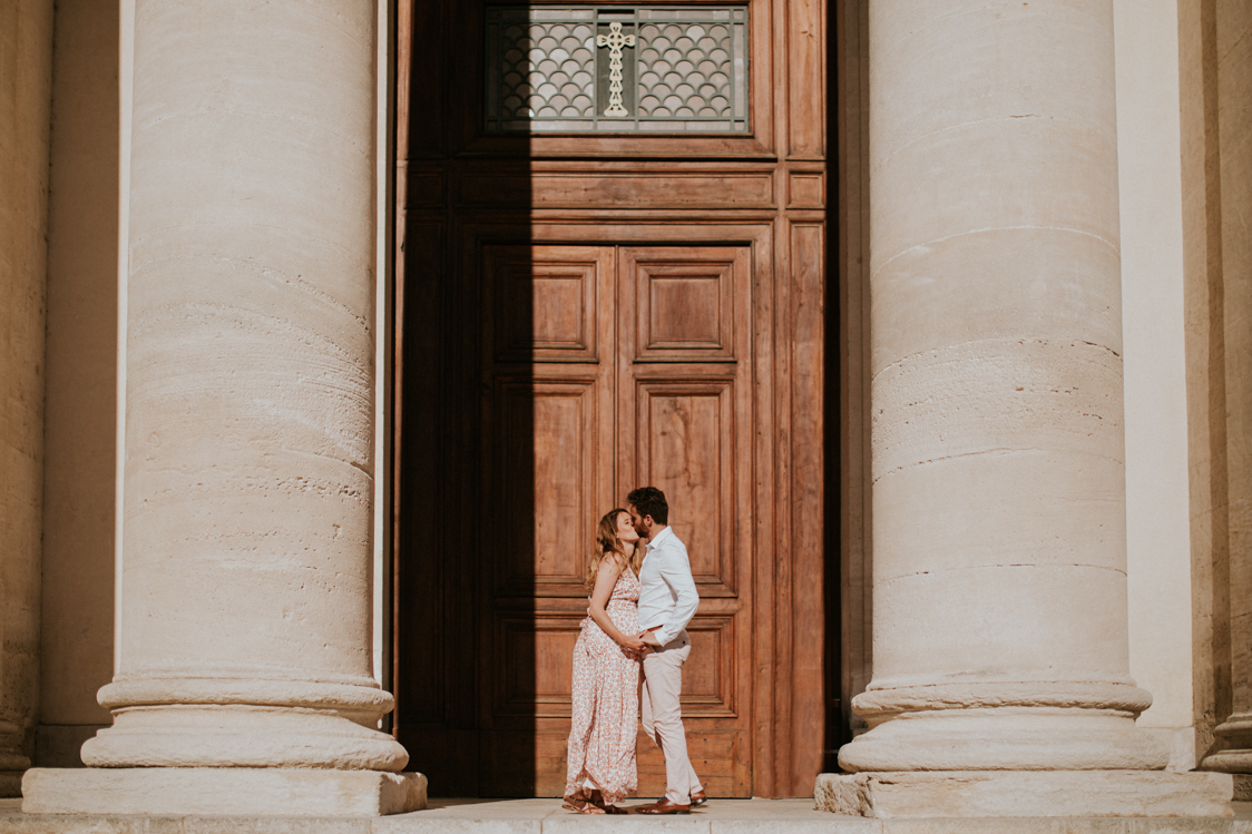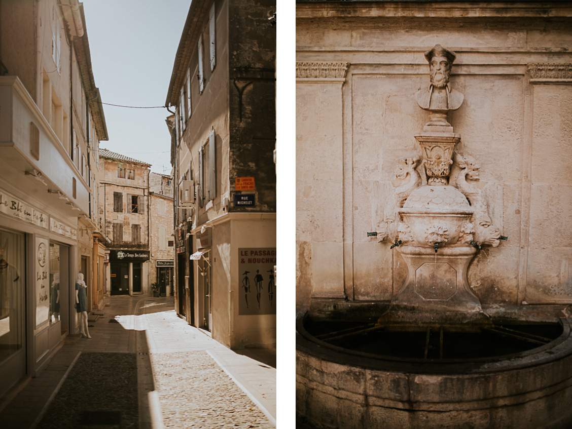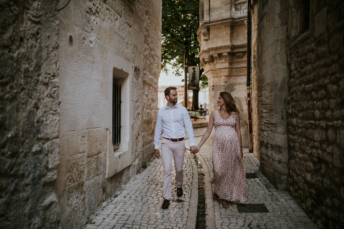 En premier lieu, nous avons commencé notre petite promenade dans le centre de Saint-Rémy-De-Provence. Ce mois de juin, au vu de la crise que nous venons de traverser est particulier. Par conséquent les rues, en semaine, ne sont pas encore bondées. Il règne une douceur apaisante en cette fin de printemps. Cette ambiance est renforcée par la sérénité de ce couple. Anne-Charlotte et Simon sont très complices et ça se ressent devant l’objectif. Je n’ai en effet aucun mal à faire transparaître leur spontanéité.