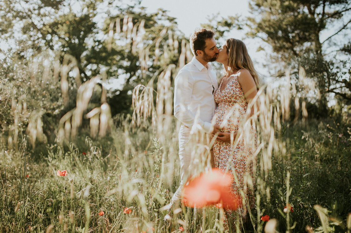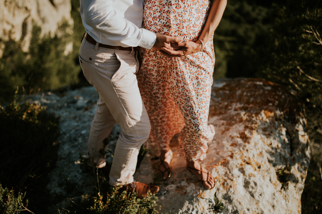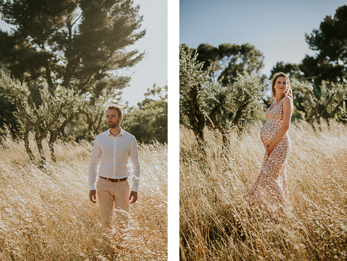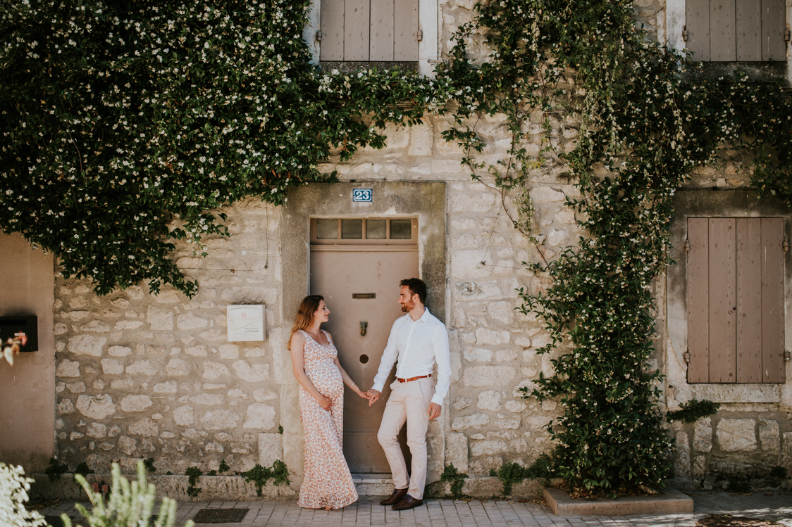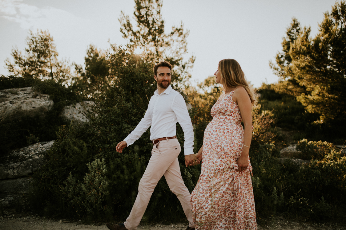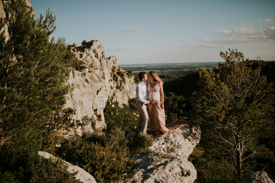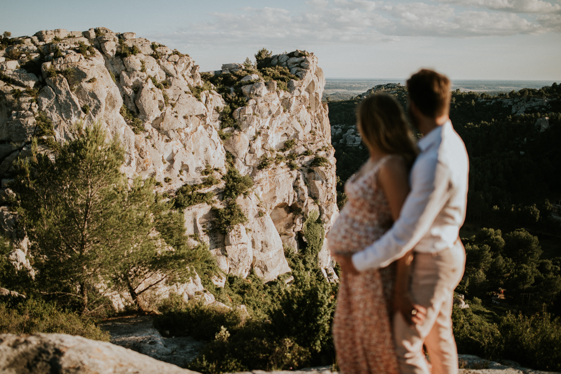 Anne-Charlotte et Simon habitent les Hautes-Alpes. Ils ont en revanche chosis le sud, plus particulièrement les Alpilles pour célébrer leur mariage. Ils vont en effet se marier en septembre prochain du côté de Tarascon. Le couple avait décidé de faire une séance engagement avant le grand jour. Comme une répétition de la séance de couple le jour J. Anne-Charlotte est enceinte d’un peu plus de huit mois mais garde une énergie incroyable à quelques semaines du terme. Cette séance est en quelque sorte un double shooting au coeur des Alpilles.
