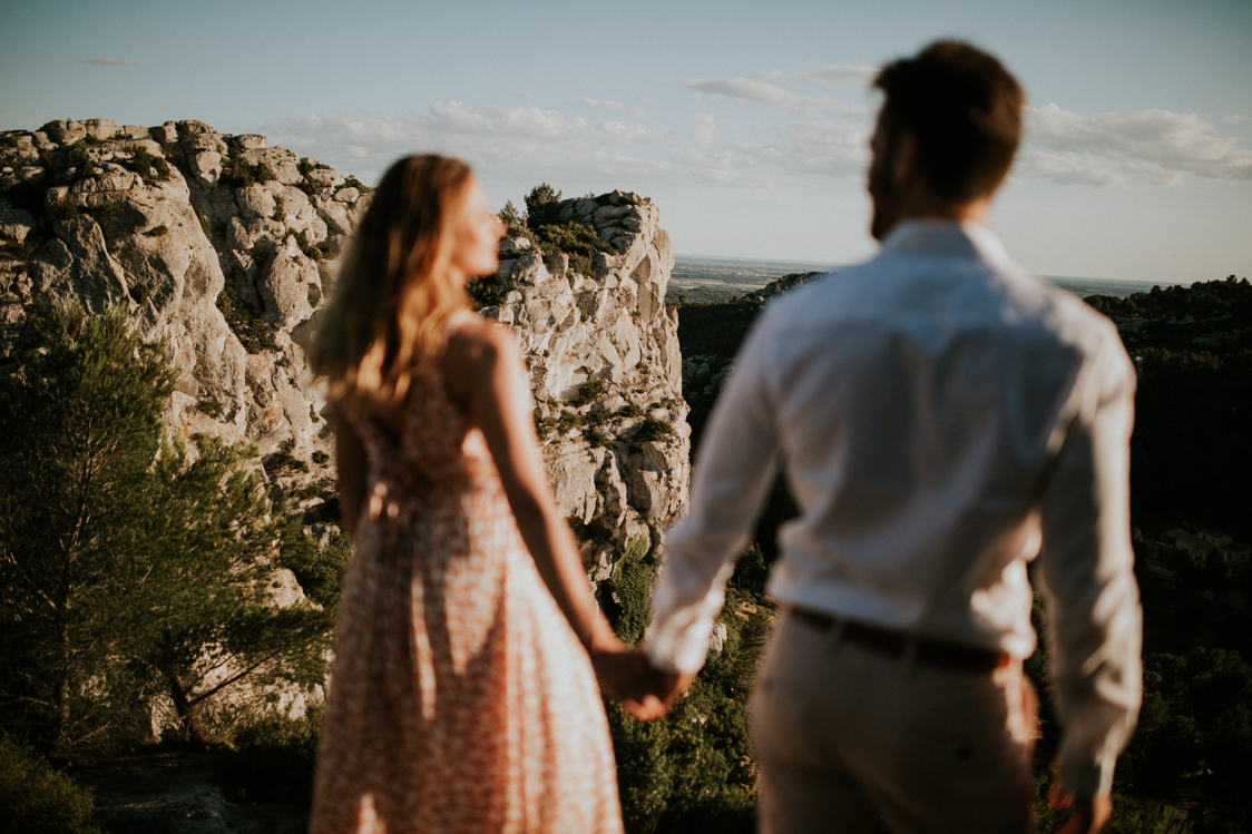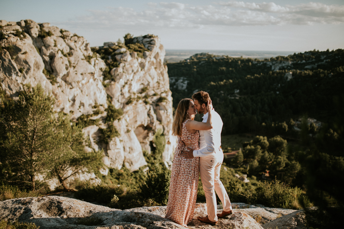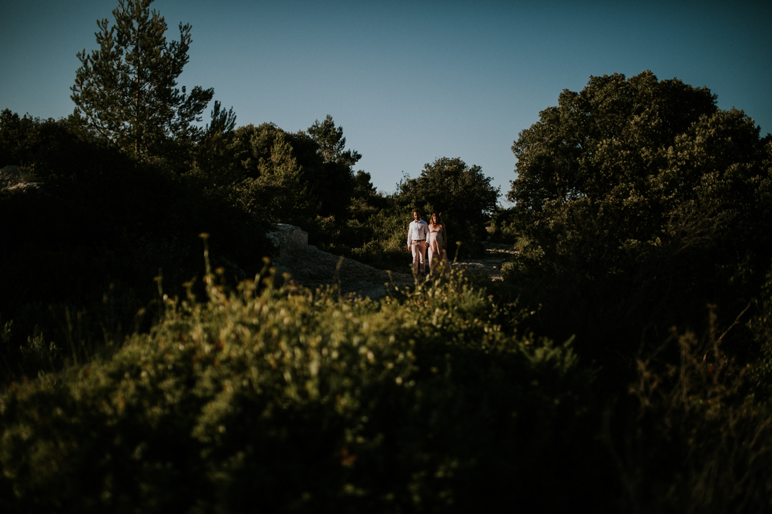 Pour finir, nous sommes montés plus au coeur du massif des Alpilles pour cette séance engagement. Ainsi, on retrouve une minéralité et des vues magnifiques. On comprend mieux avec ces paysages pourquoi cette région est si prisée par les touristes du monde entier. La fin de journée nous offre encore de belles lumières et un contraste toujours interessant à saisir.
