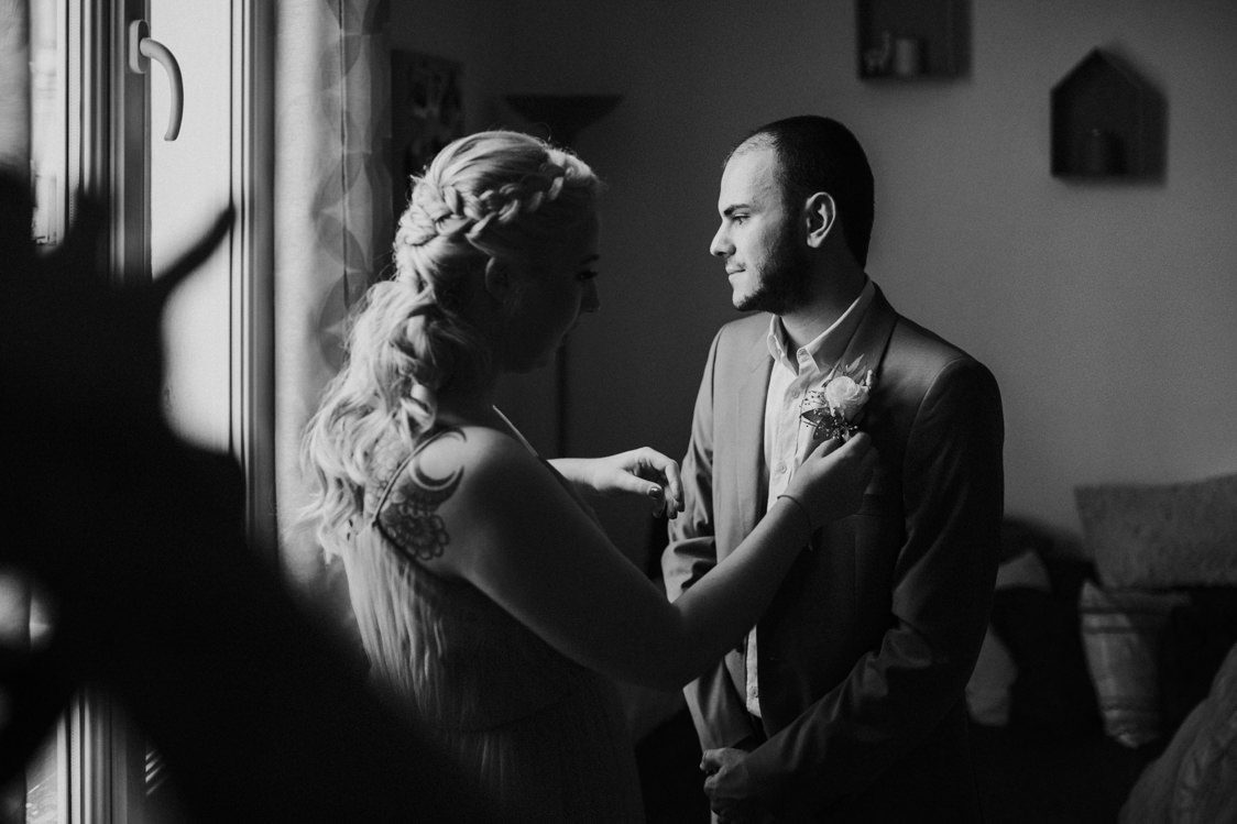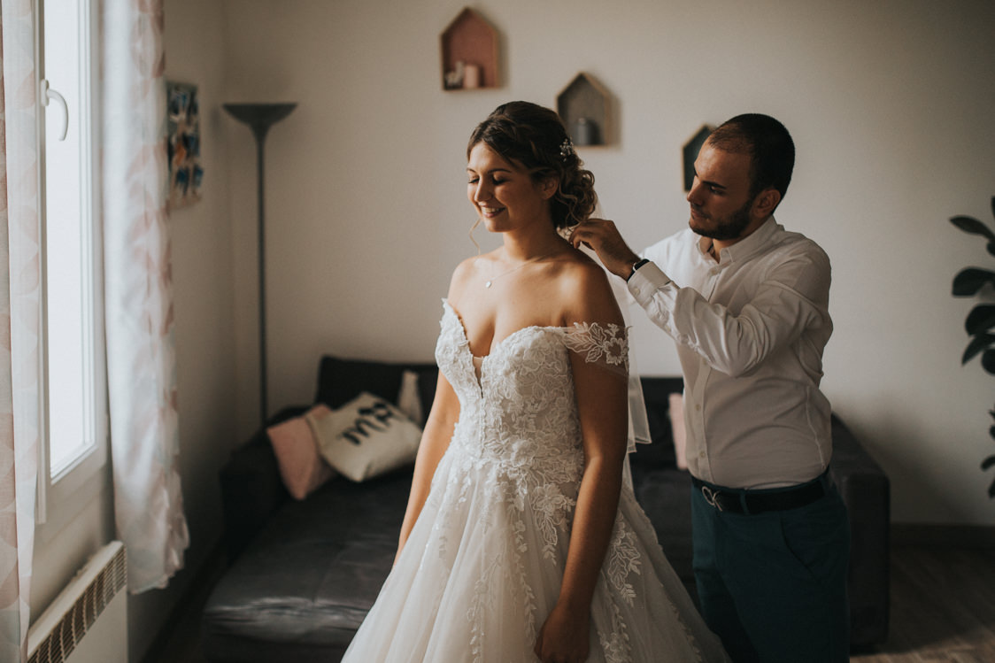 Le choix du photographe était parmi les plus compliqués parce que cela nous tenait particulièrement à cœur (tableaux Excel, comparatif de prix, de prestation, de style et d’ambiance). Mathieu et moi avons cherché sur les sites spécialisés comme ZankYou et Mariage.net mais aussi sur Instagram. Nous hésitions entre deux photographes, mais suite au coup de fil avec David, nous avons immédiatement pris notre décision. D’une part parce que nous trouvions ses photos magnifiques, travaillées mais aussi pour sa promesse de « naturel » et le feeling naturel que nous avons ressenti. Au final, il a dépassé nos espérances au niveau des photos qu’il nous a restitué et nous sommes ravis. Il a su nous mettre à l’aise, il s’est toujours montré discret. Petit truc en plus : il a contribué à l’organisation de notre mariage, car il nous a posé des questions auxquelles nous n’avions même pas songé !