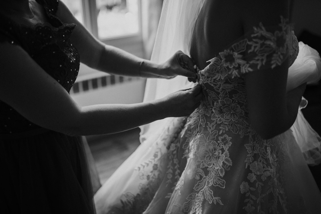 La robe de mariée pour moi c’était LE MOMENT de la préparation du mariage (comme quasi toutes les filles, j’en rêvais). Alors on est parti le 7 décembre 2019 sur une journée marathon : rendez-vous dans trois boutiques différentes dans le même après-midi, avec mes deux témoins et ma maman.