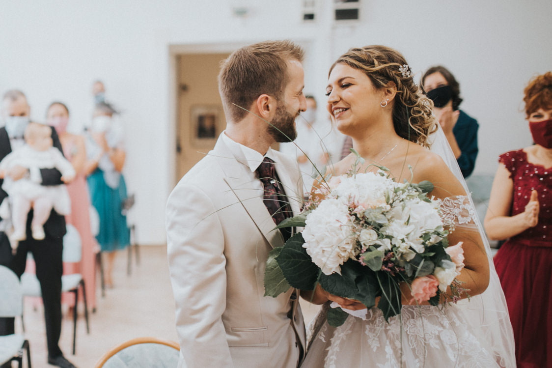 Mélanie et Mathieu font partie de ces mariés qui ont accumulés beaucoup de stress cet été en ces temps si particuliers d’épidémie de Covid 19. L’été 2020 restera comme le compliqué pour le secteur du mariage en général.