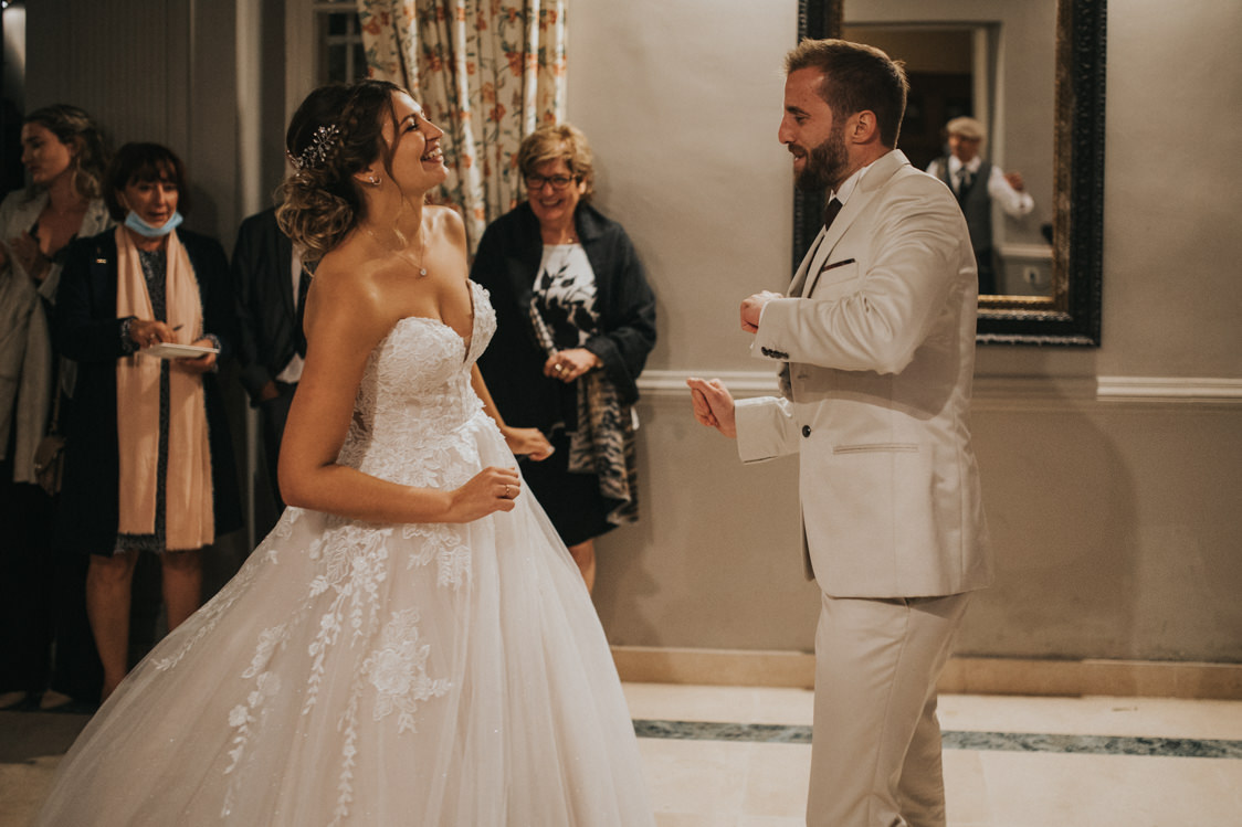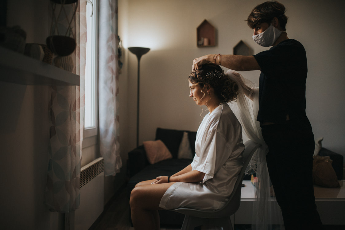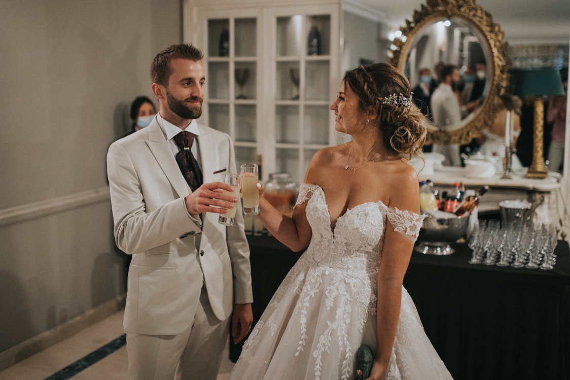 Beaucoup trop de stress ! De base, je suis de nature anxieuse et Mathieu m’apaise. Mais pendant ces 9 mois de préparation, nous sommes rentrés dans un cercle vicieux où l’on stressait ensemble et c’était l’escalade ! Avec une demande en septembre 2019 et un mariage prévu en septembre 2020, il ne fallait pas trop traîner. Toutefois, nous étions quand même d’accord sur la quasi-totalité des décisions : menu, choix du lieu, ambiance (et choix du photographe !!). En plus, nous n’avons pas été aidés par le COVID : à un jour près, nous avons failli annuler.